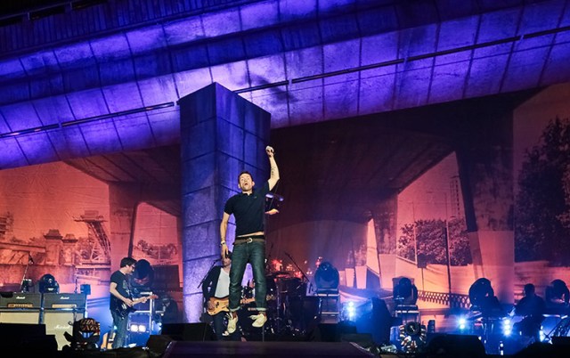 Blur at Hyde Park on Sunday, under a recreation of the Westway.
