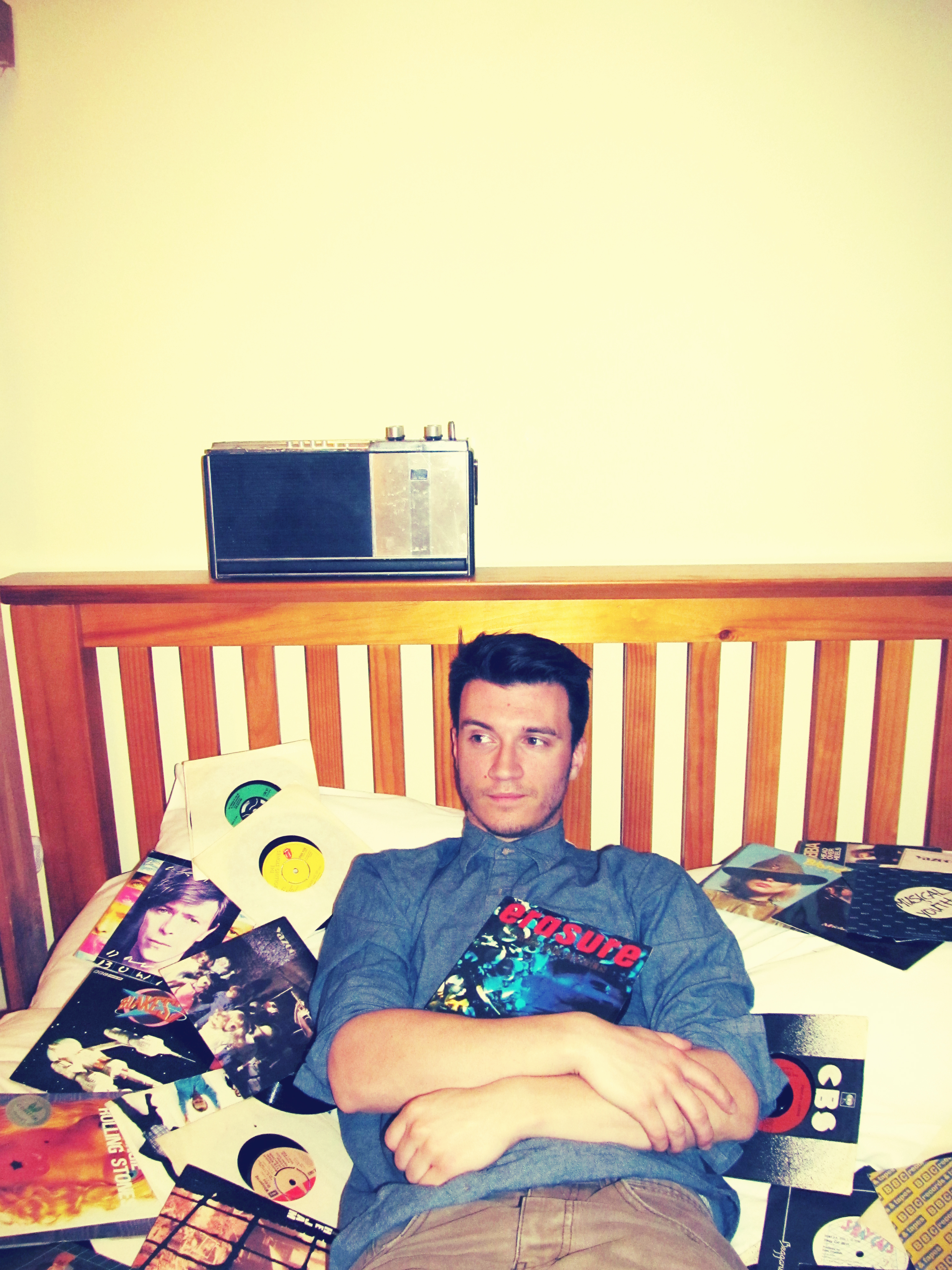 Vincent Turner AKA Frankmusik, at Studio South London, Dec 2012. Photograph by Jaime Gill. Vinyl collection by Vince.