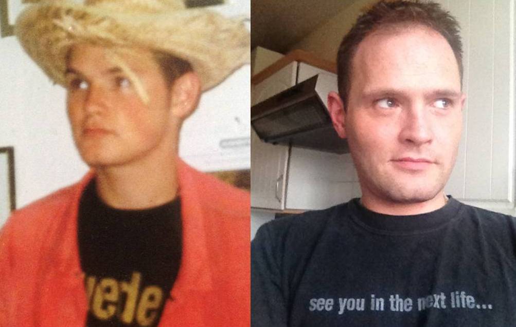 Portrait of the Suedehead as a young man of 16 and an older man of 36. I have never not owned a Suede t shirt, it occurs to me now